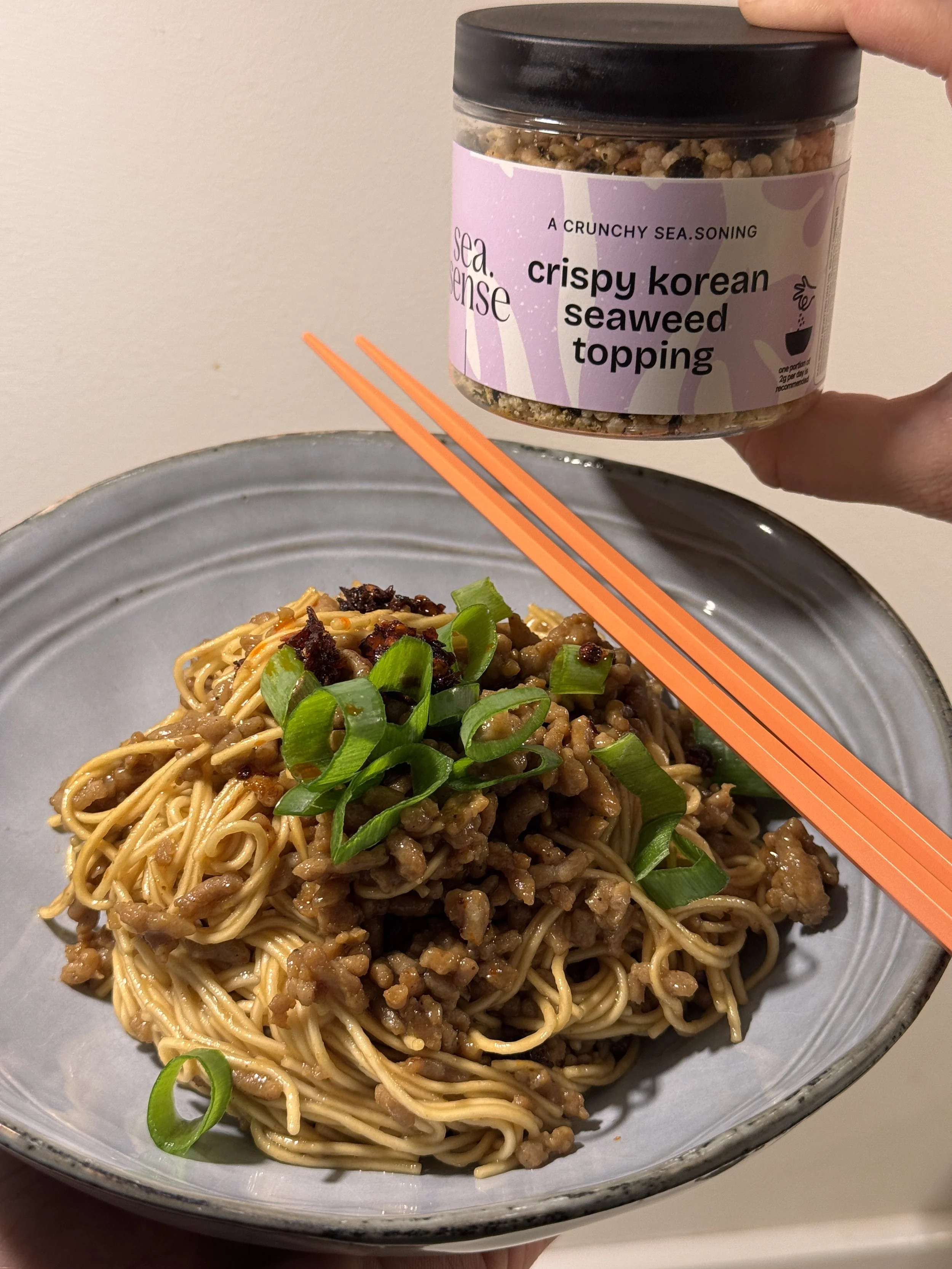 Alexander Jordaens 10/29/25 Alexander Jordaens 10/29/25 Dan Dan Noodles with Minced Meat & Crispy Korean Seaweed Topping Read More Alexander Jordaens 10/29/25 Alexander Jordaens 10/29/25 Savory Cheese Cookies with Crispy Tomato Seaweed Topping Read More Alexander Jordaens 10/6/25 Alexander Jordaens 10/6/25 Homemade sushi with Crispy Seaweed Topping Read More Alexander Jordaens 10/6/25 Alexander Jordaens 10/6/25 For the easiest pizza night: Read More Alexander Jordaens 10/6/25 Alexander Jordaens 10/6/25 Sesame Rice Bowl with Crispy Seaweed Topping Read More Alexander Jordaens 10/6/25 Alexander Jordaens 10/6/25 Smoked salmon toast with cream cheese and Crispy Seaweed Topping Read More Alexander Jordaens 10/6/25 Alexander Jordaens 10/6/25 Coconut Dumplings with Crispy Korean Seaweed Topping Read More Alexander Jordaens 10/1/25 Alexander Jordaens 10/1/25 Pasta pesto with crispy tomato seaweed topping Read More Alexander Jordaens 7/17/25 Alexander Jordaens 7/17/25 Spicey salmon pokebowl with crispy wasabi seaweed topping Read More